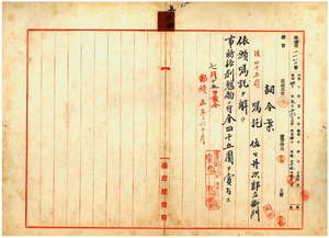 三四 嘉義模範製紙場勤務台湾総督府嘱託佐々井次郎左衛門ノ辞職願ニ依リ嘱託ヲ解キ事務格別勉励ニ付キ一時金ヲ賞与ス