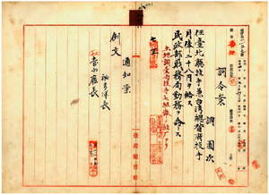 五六 台湾総督府財務局長小林丑三郎ノ内申ニ依リ元臨時台湾土地調査局技手調円次ヲ台北庁技手兼台湾総督府技手ニ任シ民政部財務局勤務ヲ命ス