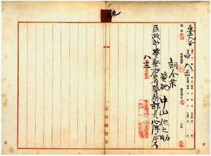 五 台湾総督府民政部警察本署長大島久満次ノ内申ニ依リ台湾総督府警視中山佐之助ニ民政部警察本署警務課長心得ヲ命ス