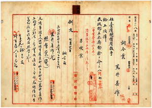 二五 台湾総督府民政部土木局長心得長尾半平ノ内申ニ依リ臨時陸軍建築部仙台支部付元陸軍技手荒井善作ヲ台湾総督府技手ニ任シ民政部土木局勤務ヲ命ス