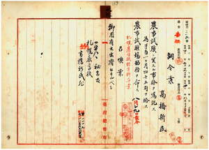 高橋新民農事試驗ニ關スル事務囑託