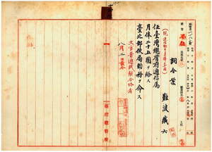 三二 台北郵便局長伊藤金弥ノ上申ニ依リ台湾総督府通信助手難波蔵六ヲ台湾総督府通信属ニ任シ台北郵便局勤務ヲ命ス