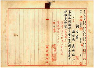 四三 台北郵便局勤務台湾総督府通信属武田壮一ハ麻剌里亜ニ罹リ職ニ堪ヘサル旨ヲ以テ辞職願ニ依リ事務格別勉励ニ付キ一時金ヲ賞与シ本官ヲ免ス