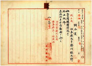 五四 台湾総督府民政部土木局長心得長尾半平ノ内申ニ依リ恒春庁技手澄川銀次郎ヲ台湾総督府技手ニ任シ民政部土木局勤務ヲ命ス