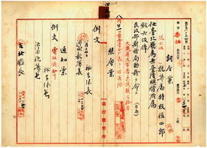 五七 台湾総督府民政部財務局長小林丑三郎ノ内申ニ依リ淡水税関塗葛堀税関支署勤務台湾総督府税関属時枝俊四郎ヲ台北庁属兼台湾総督府属ニ任シ民政部財務局勤務ヲ命ス