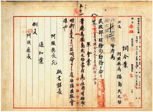 一 台湾総督府民政部財務局長小林丑三郎ノ内申ニ依リ阿緱庁属税務課勤務福島武之助ヲ台湾総督府属ニ任シ民政部財務局勤務ヲ命ス