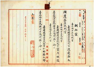 三二 覆審法院長石井常英ノ内申ニ依リ台北地方法院判官台湾総督府法院判官渡辺啓太ヲ覆審法院判官ニ補シ、台北地方法院判官台湾総督府法院判官望月恒造ニ台北地方法院台中出張所詰ヲ命シ、台北地方法院判官台湾総督府法院判官小野隆太郎ニ台北地方法院新竹出張所詰ヲ命ス[豊田俊助台南地方法院検察局嘉義出張所検察官の退職に関する記載あり]