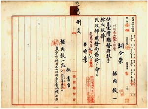 九 台湾総督府民政部財務局長小林丑三郎ノ内申ニ依リ元阿緱庁属堀内毅一ヲ台湾総督府技手ニ任シ民政部財務局勤務ヲ命ス