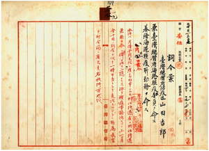 一九 台湾海港検疫所長山田寅之助ノ内申ニ依リ台湾総督府防疫医山田吉郎ヲ台湾総督府海港検疫医員ニ兼任シ基隆海港検疫所勤務ヲ命ス