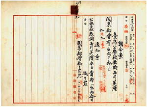 二九 関東都督府秘書官杉浦倹一ヨリ台湾総督府秘書官大津麟平ノ電報照会ニ依リ八芝蘭公学校勤務台湾公学校教諭西川美隆ヲ関東州公学堂教諭トシテ関東都督府ヘ出向ヲ命ス