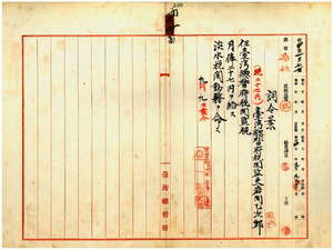 三四 淡水税関長岩政憲三ノ内申ニ依リ台湾総督府税関監吏岩間乙次郎ヲ台湾総督府税関監視ニ任シ淡水税関勤務ヲ命ス