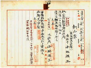 四七 台南郵便局長速水経憲ノ内申及ヒ上申ニ依リ台南郵便局勤務台湾総督府通信手小林保三ヲ台湾総督府通信属ニ任シ増俸ノ上台南郵便局勤務ヲ命シ、麻剌里亜ニ罹リ職ニ堪ヘサル旨ヲ以テ辞職願ニ依リ事務格別勉励ニ付キ一時金ヲ賞与シ本官ヲ免ス