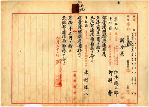 五九 台湾総督府民政部通信局長代理賀来佐賀太郎ノ内申ニ依リ民政部通信局勤務雇松本鴻三郎ト柳瀬馨ヲ台湾総督府通信属ニ任シ民政部通信局勤務ヲ命シ、民政部通信局勤務雇米村林八ヲ台湾総督府通信手ニ任シ民政部通信局勤務ヲ命ス