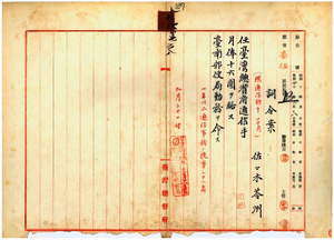 六八 台南郵便局長速水経憲ノ上申ニ依リ台南郵便局電信課勤務台湾総督府通信助手佐々木苓州ヲ台湾総督府通信手ニ任シ台南郵便局勤務ヲ命ス