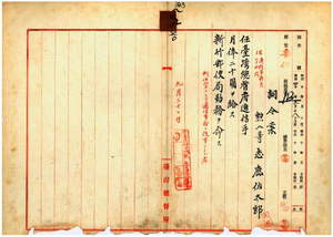七〇 新竹郵便局池田兼雄ノ内申ニ依リ新竹郵便局勤務台湾総督府通信事務員志鹿佐太郎ヲ台湾総督府通信手ニ任シ新竹郵便局勤務ヲ命ス