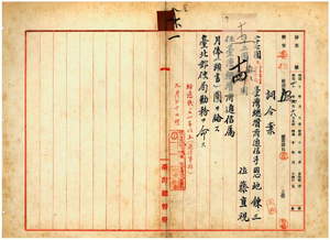 一 台北郵便局長伊藤金弥ノ上申ニ依リ台湾総督府通信手恩地錬三ト台湾総督府通信手佐藤直視ヲ台湾総督府通信属ニ任シ台北郵便局勤務ヲ命ス