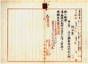 七 斗六庁警部阿部民三郎ハ麻剌里亜ニ罹リ職ニ堪ヘサル旨ヲ以テ辞職願ニ依リ事務格別勉励ニ付キ一時金ヲ賞与シ本官ヲ免ス