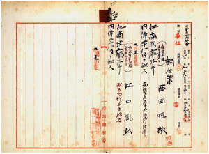一〇 南投庁長能勢靖一ノ上申ニ依リ南投庁事務嘱託西田恒敬ト南投庁事務嘱託江口胤弘ヲ南投庁技手ニ任ス