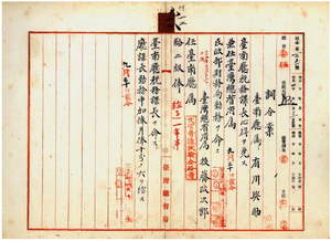 一二 台湾総督府民政部財務局長代理峡謙斉ノ内申ニ依リ台南庁属有川与助ニ台南庁税務課長心得ヲ免シ台湾総督府属ヲ兼任シ台湾総督府民政部財務局勤務ヲ命シ、台湾総督府属後藤政次郎ヲ台南庁属ニ任シ台南庁税務課長ヲ命ス