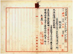 一八 宜蘭庁長中田直温ノ内申ニ依リ台湾公学校教諭兼校長小学校教諭山崎倉一郎ニ台湾小学校教諭兼任ヲ免シ、台湾公学校教諭兼校長近藤良太郎ニ台湾小学校教諭ヲ兼任トシ宜蘭尋常高等小学校本科正教員ヲ命ス