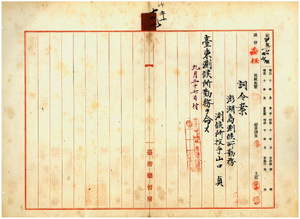 二一 台湾総督府民政部通信局長代理賀来佐賀太郎ノ内申ニ依リ澎湖島測候所勤務台湾総督府測候所技手山口貞ニ台東測候所勤務ヲ命ス