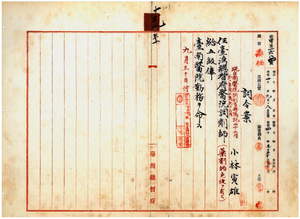 三一 台南医院長松尾知明ノ内申ニ依リ台南医院調剤事務嘱託小林寅雄ヲ台湾総督府医院調剤師ニ任シ台南医院勤務ヲ命ス