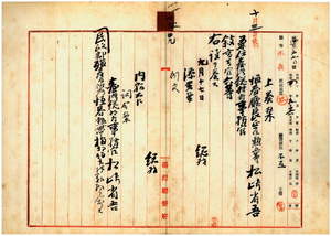 四九 恒春庁長松崎省吾ニ台湾総督府事務官ヲ兼任シ[内申書なし]殖産局長代理峡謙斉ノ具申ニ依リ台湾総督府民政部殖産局林務課兼農商課勤務ヲ命ス
