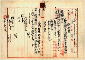 五九 台湾総督府覆審法院判官豊田俊助ハ外傷ニ因ル左上肢知覚麻痺ニ罹リ職ニ堪ヘサル旨ヲ以テ辞職願ニ依リ退職ヲ命シ(九月二一日付)事務格別勉励ニ付キ一時金ヲ賞与ス(一〇月四日付)