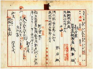 六五 台湾総督府民政部財務局長小林丑三郎ノ内申ニ依リ鉾田税務署兼麻生税務署勤務税務署税務属根本斌ヲ桃園庁属ニ任シ酒造税ニ関スル事務ヲ嘱託シ台湾総督府民政部財務局勤務ヲ命ス