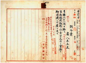 九 臨時台湾戸口調査部長祝辰巳ノ内申ニ依リ台湾総督府雇八木正直ヲ増俸ノ上(九月三〇日付)事務格別勉励ニ付キ一時金ヲ賞与シ御用済ニ付キ雇ヲ免ス(一〇月一日付)