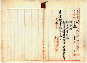 一三 台湾総督府民政部通信局長代理賀来佐賀太郎ノ内申ニ依リ北島灯台勤務台湾総督府灯台看守中橋六三郎ニ基隆灯台勤務ヲ命ス