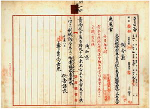 一四 台湾総督府専売局技手兼台湾総督府技手谷原米吉ハ疾病ニ罹リ職ニ堪ヘサル旨ヲ以テ辞職願ニ依リ兼官ヲ免ス[辞職願等の文書なし]