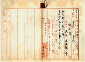 三六 漢口領事転勤ニ付キ福州領事台湾総督府嘱託高橋橘太郎ハ御用済ニ依リ嘱託ヲ解キ事務格別勉励ニ付キ一時金ヲ賞与ス