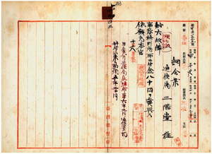 四三 台北郵便局勤務台湾総督府通信属二階堂猛ハ麻拉里亜ニ罹リ職ニ堪ヘサル旨ヲ以テ辞職願ニ依リ昇級ノ上事務格別勉励ニ付キ一時金ヲ賞与シ本官ヲ免ス