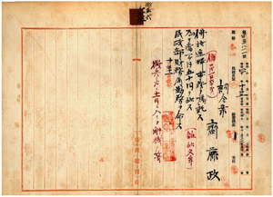 五六 台湾総督府民政部財務局長代理峡謙斉ノ内申ニ依リ斎藤政ニ仏語通訳事務嘱託ヲ命シ民政部財務局勤務ヲ命ス