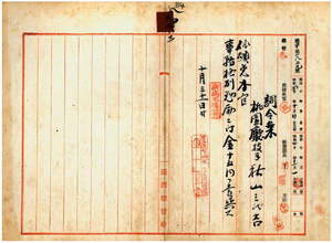 六三 桃園庁技手秋山三代吉ハ脚気ニ罹リ職ニ堪ヘサル旨ヲ以テ辞職願ニ依リ本官ヲ免シ事務格別勉励ニ付キ一時金ヲ賞与ス