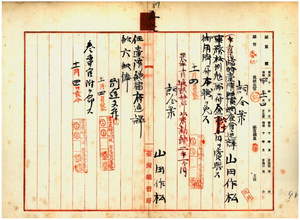 一八 臨時台湾旧慣調査会通訳山田作松ヲ御用済ニ付キ事務格別勉励ニ付キ一時金ヲ賞与シ本職ヲ免シ台湾総督府通訳ニ任シ参事官附ヲ命ス