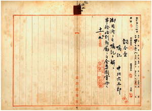 四二 台湾総督官房文書課斎藤参吉ノ内申ニ依リ台湾総督府嘱託中北六三郎ヲ御用済ニ付キ嘱託ヲ解キ事務格別勉励ニ付キ一時金ヲ賞与ス
