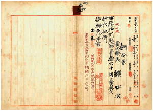 五六 台北庁属続必次ハ疾病ニ罹リ職ニ堪ヘサル旨ヲ以テ辞職願ニ依リ事務格別勉励ニ付キ一時金ヲ賞与シ昇級ノ上本官ヲ免ス