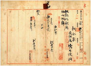 七四 彰化庁長小松吉久ト台中郵便局長野村勘四郎ノ内申ニ依リ台湾総督府通信属富川悦治ヲ彰化庁属ニ任ス