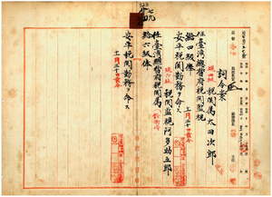 七九 安平税関長岩政憲三ノ内申ニ依リ台湾総督府税関属太田次郎ヲ台湾総督府税関監視ニ任シ安平税関勤務ヲ命シ、台湾総督府税関監視阿多助五郎ヲ台湾総督府税関属ニ任シ安平税関勤務ヲ命ス