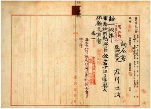 一六 台北監獄宜蘭支監勤務台湾総督府監獄監吏石川三次ハ疾病ニ罹リ職ニ堪ヘサル旨ヲ以テ辞職願ニ依リ昇級ノ上事務格別勉励ニ付キ一時金ヲ賞与シ本官ヲ免ス