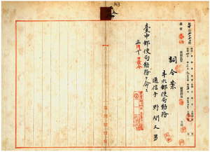 二八 台中郵便局長野村勘四郎ノ内申ニ依リ斗六郵便局勤務台湾総督府通信手野間又男ニ台中郵便局勤務ヲ命ス