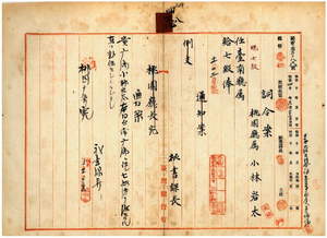 四八 台南庁長津田毅一ト桃園庁長西美波ノ内申ニ依リ桃園庁属小林岩太ヲ台南庁属ニ任ス