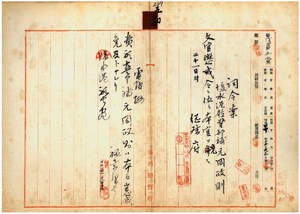 五四 台湾総督佐久間左馬太ノ審査要求ニ依リ文官普通懲戒委員会ニ於テ塩水港庁警部補元岡政則ニ対スル懲戒事件ヲ審査スルニ手続無ク店仔口街陳大徳外四名ニ仕払フヘキ通路橋梁修繕費ノ一部ヲ手許ニ保管セシ為メ文官懲戒令第三条ニ依リ本官ヲ免ス