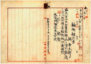 八 深坑庁長丹野英清ノ内申ニ依リ深坑庁雇岡常太郎ヲ文官任用令第六条ニ基キ深坑庁属ニ任用スルニ付キ文官普通試験委員長大島久満次ニ銓衡請求ノ件