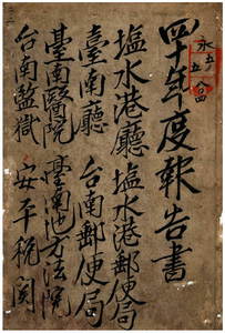 一 明治四〇年度官有財産異動報告ノ件 1907-02-18 日付エラー・ 塩水港庁官有財産異動報告ノ件 1906-11-06 1907-02-18・―・ 塩水港庁長村上先ヨリ公売ヲ停止シタル元新営庄郵便局出張所宿舎及附属建物ヲ再公売ニ附シタルニ付キ報告ノ件(民総第一九二〇号・総地理第三〇四号) 1907-03-13 1907-03-26・―・ 塩水港庁長村上先ヨリ元新営庄郵便電信局出張所宿舎及附属建造物ヲ台南郵便電信局ヘ保管転換シタルニ付キ報告ノ件(民総第一七〇〇号・総地理第二七二号) 1907-03-06 1907-04-25・―・ 塩水港庁長村上先ヨリ元新営庄郵便電信局出張所官舎附属物ヲ同庁所管官有家屋官舎ノ板塀及ヒ屋根ノ修繕ニ使用致シタキ旨稟申ノ件認可ス(指令第一八二〇号・民総第三一四二号・総地理第四九五号) 1907-04-24 1907-05-25・―・ 先ニ提出(・─・参照)シタル報告書中誤記アルニ付キ訂正方依頼ノ件 1907-05-28 1907-06-19・―・ 塩水港庁長村上先ヨリ明治三九年一二月二二日付民総第六九六七号ヲ以テ指令サレタ元新営庄郵便電信出張所宿舎及同附属家屋売却ノ儀処分完了ニ付キ報告ノ件(民総第三一一二号・総地理第四八五号) 1907-04-24 1907-06-29・―・ 塩水港庁長朝倉菊三郎ヨリ塩水港庁大苛田西堡布袋嘴庄・同庁塩水港堡塩水港街・同庁太子宮堡新営庄・同庁学甲堡北門嶼庄ノ建物敷地及附属物ニ係ル明治四〇年度土地及附属物増減異動報告ノ件(総地理第七〇二号) 1908-06-08 1908-06-29・ 塩水郵便局官有財産異動報告ノ件 1907-09-05 1908-10-30・―・ 塩水港郵便局長斎土継雄ヨリ塩水港庁塩水港堡岸内庄ノ塩水港郵便局職員官舎附属共同浴室新築ニ付キ報告ノ件(民総第八六九一号・総地理第一六七八号) 1907-12-23 1908-01-27・―・ 塩水港郵便局長斎土継雄ヨリ同局ノ板塀位置変更ニ付キ報告ノ件(総地理第二七八号) 1908-03-06 1908-03-09・―・―・ 塩水港郵便局長斎土継雄ヨリ庶第一〇二号ヲ以テ明治四〇年度(自四月至三月)土地及附属物増減異動報告ニ付テ該当事項ナキ旨報告ノ件(総地理第三六八号) 1908-04-04 1908-04-06・―・―・ 塩水港郵便局長斎土継雄ヨリ庶第一〇三号ヲ以テ為シタル塩水港庁塩水港堡岸内庄ノ塩水港郵便局官舎附属共同浴室新築ニ付キ報告ノ件(総地理第一一六〇号) 1908-04-04 日付エラー・―・―・ 塩水港郵便局長斎土継続雄ヨリ塩庶第四一号ヲ以テ本年四月四日付庶第一〇二号及ヒ第一〇三号ヲ以テ提出シタル官有財産異動報告ニ対シ総務局ヨリ提出洩レノ照会カアリタルカ前記ノ如ク提出済ニ付キ総務局長職務取扱鹿子木小五郎ヘ回答ノ件(総地理第一一六〇号) 1908-06-03 1908-06-05・―・ 塩水港郵便局長岡儀三郎ヨリ塩水港郵便局庁舎附属掲示場移転ニ付キ報告ノ件(総地理第一五一八号) 1908-08-24 1908-10-10・ 台南庁官有財産異動報告ノ件 1907-06-06 1907-07-06・―・ 台南庁長村上先ヨリ台南総第六三八号ヲ以テ稟申サレタ台南庁台南市丁・戊四ヶ所・庚二ヶ所ノ合計七筆ノ国有不動産タル建物敷地ヲ競争入札ニ依リ払下ニ付キ認可シ夫々ノ建物敷地ヲ台南庁台南市戊居住ノ韓欽奇(一ヶ所)・同庁同市丙居住ノ寺本周五郎(一ヶ所)・同庁同市乙居住ノ林宗海(五ヶ所)ヘ売却シタル旨報告ノ件(民総第五八二五号・総地理第九八〇号) 1907-06-25 1907-08-16・―・ 台南庁長村上先ヨリ台南総第七四一号ヲ以テ旧清国政府官有ノ台南庁台南市戊・同市庚・同市効忠里安平街ノ建物倒壊ニ付キ官有家屋異動トシテ報告ノ件(民総第五六四四号・総地理第九五二号) 1907-07-30 1907-08-20・―・ 台南庁台南市丙居住石本只衛ヨリ住宅建設ノ為メ出願サレタ台南市乙ト同市丁ノ官有建物敷地ニ対シ台南庁長村上先(台南総第二〇一〇号ノ一)ノ副書ヲ添ヘテノ稟申ニ付キ認可(民総第四九七〇号・総地理第八二〇号)シタル処売却シタルヲ以テ国有不動産異動報告ノ件(民総第六〇八〇号・総地理第一〇三一号・台南総第二〇一〇号ノ七) 1907-06-27 1907-08-27・―・ 台南庁長村上先ヨリ台南総第二一六四号ノ七ヲ以テ台南庁大目降里大目降街土名王公廟ノ官有原野ヲ臨時台湾糖務局ヘ引渡シノ為メ保管転換報告ノ件(民総第五九八九号・総地理第一〇一九号・台南総第二一六四号ノ一〇) 1907-08-12 1907-08-28・―・ 台南庁長村上先ヨリ台南総第七四七号ヲ以テ稟申サレタ台南市乙ト同市戊並ニ同市安平街ノ官有家屋ニ対シ競争契約ニヨル払下ヲ認可(民総第五七〇五号・総地理第九五八号)シタル処夫々林添寿・韓欽奇・竹中徳次郎ニ払下ケラレタル旨報告ノ件(民総第五七〇五ノ一号・総地理第一一六七号・台南総第七四七号) 1907-08-01 1907-09-26・―・ 台南庁長村上先ヨリ台南総第一八三一号ノ四ヲ以テ台南市辛土名安海港街ノ土地ハ明治四〇年六月六日埋立開墾ノ結果建物敷地トシテ適当ナルモノト認メラレタルニ依リ国有財産ニ編入シタルニ付キ報告ノ件(民総第六四九二号・総地理第一一一八号) 1907-09-04 1907-09-14・―・ 台南庁台南市戊ニ居住ノ藤谷ミナヨリ出願ノ倉庫建築ノ為メ台南庁台南市辛ノ官有建物敷地ノ払下願ニ対シ該地ニ元溝渠ナラシメ自然埋立トナリタルニ拠リ地目変換シタルモノニ付キ台南庁長津田毅一ヨリ台南総第二五
