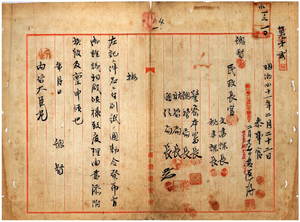 一 勅令発布ニ関スル一括書類(1908-02-22~1908-05-09);官租改正調査ノ事務ニ従事セシムル為メ台湾総督府ニ臨時属設置ノ件(勅令第一二二号)(1908-02-22~1908-05-09);台湾総督府郵便局官制中改正ノ件(勅令第一二三号)(1908-02-22~1908-05-09);台湾総督府国語学校官制中改正ノ件(勅令第一二四号)(1908-02-22~1908-05-09);台湾総督府中学校官制中改正ノ件(勅令第一二五号)(1908-02-22~1908-05-09);明治二九年勅令第三〇五号中ヲ改正シ台湾総督府中学校生徒ニ修学旅行ノ旅費及ヒ同中学校第一部生徒ニ食費ヲ補助セシムル件(1908-02-22 1908-02-25);台湾総督府地方官官制中改正ノ件(勅令第一五一号)(1908-02-22~1908-06-15);台湾総督府警視総長ノ増俸ニ関スル件(1908-02-22~1908-04-17)