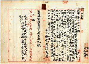 三一 明治三六年五月訓令第九七号保甲条例施行細則標準第八条保正及ヒ甲長ノ任期計算方ニ付キ深坑庁長ヘ通牒ノ件