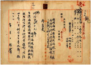 一二 臨時海港検疫所開設ニ付キ検疫許可証及ヒ証明書ノ様式ハ明治四〇年八月訓令第一五九号台湾海港検疫施行規則中船舶検疫許可証及ヒ証明書様式ニ依ル件(訓令第一四九号)